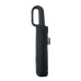 Foldable 21'' windproof umbrella with full black plating fibreglass frame with 2 sections. Fibreglass ribs. 190T RPET pongee panels. D shape carabiner handle w/ rubber finish. Auto open and closure. Includes pouch