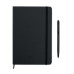 A5 notebook with 2-in-1 stylus ball pen. Hard cover. Casebound. 144 lined pages (72 sheets). Matching ball pen with touch screen stylus. Blue ink. Matching elastic closure strap and ribbon bookmark. FSC MIX CREDIT | P7.1 | FSC-C213206