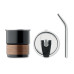 Single wall tumbler in recycled stainless steel (90% recycled stainless steel and 10% stainless steel) with a detachable grip in acacia wood, stainless steel straw. Straw socket and direct drink opening leak-free lid. Capacity: 260 ml. As this is a single walled mug, heat transfer can still occur.