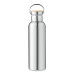 Double wall Stainless Steel insulating vacuum flask with bamboo lid and carry handle. Capacity: 750 ml. Leak free. Bamboo is a natural product, there may be slight variations in colour and size per item, which can affect the final decoration outcome.