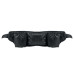 Sports running and hiking waist bag made of 420D RPET polyester with mesh back. Features two bottle compartments, central zip pocket, and adjustable strap. Lightweight and durable.