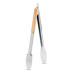 Stainless steel barbecue tongs with bamboo grips. Locking mechanism. Bamboo is a natural product, there may be slight variations in colour and size per item, which can affect the final decoration outcome.