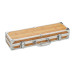 Set of 3 stainless steel barbecue tools. Knife, fork and sharpening tool with wooden handles in aluminium case. Presented in wooden look aluminium case.