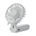 Portable foldable fan in ABS with 3 speed settings. Can be used as handheld or desk fan. Includes 1 replaceable and rechargeable 14500 Lithium battery 500 mAh.