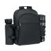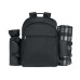 Picnic backpack in 300D RPET polyester for 4 people with cooling base compartment with high quality cutlery, 1 waiter style corkscrew, cutting board, bread knife and picnic blanket. Bag in Cationic dyed Polyester....