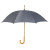 23 inch manual open umbrella in 190T polyester with wooden shaft, tips and top. Black plating metal ribs. Curved wooden handle. Wood in natural finish. Manual closure.