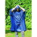 Foldable plastic raincoat with attached hood in pouch.