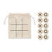 Wooden tic tac toe. Presented in a cotton pouch. Wood is a natural product, there may be slight variations in colour and size per item, which can affect the final decoration outcome.