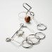 Set of 2 metal, wood and cotton cord brain teasers: 2 and 4 pieces respectively. Presented in a recycled paper box.