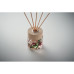 Glass jar with wooden fragrance diffuser with flower decoration inside, with 6 reed stick. Fragrance: vanilla. Capacity: 100ml.