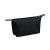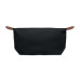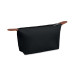 Cosmetic bag made of 600D RPET polyester with top zip closure and brown PU detail.