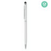 Twist action stylus ball pen in aluminium with antibacterial barrel and shiny chrome clip. ISO 22196. Blue ink.