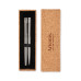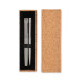 Recycled stainless steel pen set with ball pen and roller ball. Presented in matching cork box. Blue and black ink respectively. Cork is 100% natural material. Due to its structural nature and surface porosity the final print result per item may have deviations.
