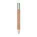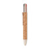Push button 4-colour ink ball pen with cork barrel and wheat straw (50%) and ABS plastic (50%) fittings.