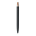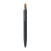 Push ball pen in recycled aluminium with cork detail button and metal clip. Blue ink.