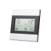 Black and silver weather station. Includes a clock, temperature humidity display and calendar. 2 AAA batteries not included.