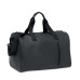 Duffle bag in soft PU with foam reinforcement to the base. One main compartment, zippered front pocket. 210D RPET polyester lining. 2 handles and one adjustable and detachable shoulder strap...