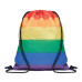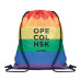 Rainbow Drawstring bag in 210D RPET polyester with PP strings.