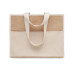 This jute shopping and cooler bag has long handles, a laminated interior for keeping things fresh and a hook and loop closure. The front has a canvas pocket and cotton webbing for smaller items. This jute bag is perfect for daily grocery shopping. This jute bag has a long lifespan which makes it a great alternative to disposable, plastic bags.