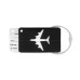 Aluminium airplane luggage tag with name and address label. Comes with metal string and screw connector.