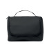 Cosmetic organiser bag in soft PU with hanging hook and 210D RPET lining. One large main compartment with inner zippered mesh compartment and 1 mesh compartment.