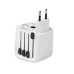 Universal SKROSS® travel adapter. Receptacles for Europe, USA/Japan, Australia/China.   2-pole, unearthed. Fulfils all international security-relevant standards and norms. Even child safe.