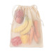 Re-usable food bag. One side is in cotton (140gr/m²) and other one is in mesh cotton (110gr/m²). Drawstring closure.