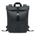 RPET felt backpack with cotton strap closure and zippered pocket on the front. It has a laptop compartment.