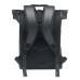 15 inch rolltop laptop backpack in soft PU with padded back and reinforced base. Large front zipped pocket. The lining is 210D RPET.