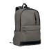 15inch laptop backpack in recycled washed canvas. Large front zippered pocket with inner laptop compartment. Small front zippered pocket. Two side-slip pockets. Padded back and shoulder straps, back panel and base. 450 gr/m².