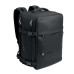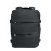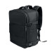 Cabin-size extendable backpack in 600D RPET polyester with PU backing and 180o opening. Includes shoe division, padded 15'' '' laptop pocket, mesh straps, luggage strap, and side buckles.