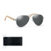 Sunglasses with bamboo arms and coloured mirrored lenses in microfibre pouch. UV400 protection. Bamboo is a natural product, there may be slight variations in colour and size per item, which can affect the final decoration outcome.