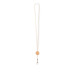 Cotton cord lanyard with round bamboo detail, metal hook and safety breakaway. Length: 50 cm. Bamboo is a natural product, there may be slight variations in colour and size per item, which can affect the final decoration...