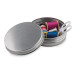 Sewing kit in tin box.