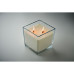 Extra large vanilla fragranced plant based wax candle 1300gr in glass with 2 wooden wicks and beehive design on top. Burning time 70 hours