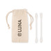 Set of 2 reusable and washable silicone swabs with 3 different heads. Presented in drawcord cotton pouch.