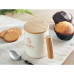 Porcelain mug with bamboo lid and handle. Capacity: 380 ml. Bamboo is a natural product, there may be slight variations in colour and size per item, which can affect the final decoration outcome.