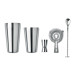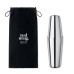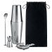 Stainless steel cocktail set with 750 ml shaker, measuring jug (30 ml) and sieve in cotton pouch.