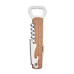 3 in 1 bottle opener in acacia wood case. It includes a corkscrew, 2 bottle openers and foil cutter.