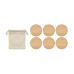 Set of 6 round bamboo coasters presented in a cotton drawcord bag. Bamboo is a natural product, there may be slight variations in colour and size per item, which can affect the final decoration outcome.