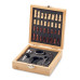 Chess board wine set in bamboo box. Including corkscrew, wine pourer, bottle stopper and wine bottle drip ring.