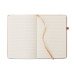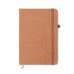 A5 notebook with 70% recycled pre-consumer leather and 30% latex PU cover. Casebound. 160 lined pages recycled paper (80 sheets). Matching elastic closure strap and pen holder.