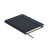 A5 notebook with 70% recycled pre-consumer leather and 30% latex PU cover. Casebound. 192 lined pages recycled paper (96 sheets). Matching cotton elastic closure strap and pen holder.