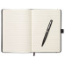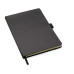 A5 notebook with pen. Hard PU cover. Casebound. 144 lined pages (72 sheets). Matching elastic closure strap, ribbon bookmark and pen holder. Matching metal push button ball pen. Blue ink. FSC MIX CREDIT | P7.1 | FSC-C213206