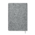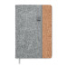 A5 notebook with RPET felt cover and cork. 160 recycled paper lined pages (80 sheets). Elasticated pen loop on front, matching elastic closure strap and ribbon page-marker. FSC®-certified | FSC MIX CREDIT, P7.1, FSC-C213206