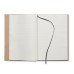 A5 notebook with hard recycled carton cover. Casebound. 200 lined recycled paper pages (100 sheets/80 gsm). Elastic closure strap and ribbon page-marker. Made in EU....