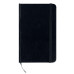 A5 notebook with hard PVC cover. Casebound. 192 squared recycled paper pages (96 sheets). Matching elastic closure strap and ribbon bookmark.
