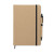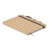 A5 notebook with hard recycled carton cover. Case bound. 160 lined pages (80 sheets recycled paper). Elastic closure strap and pen loop, ribbon bookmark. Includes push button ball pen with recycled paper barrel. Blue ink...