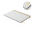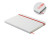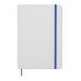 A5 notebook with hard cover made of 70% recycled milk carton pack and 30% recycled paper. White cover. Casebound. 160 lined recycled paper pages (80 sheets). Elastic closure strap, ribbon bookmark matching with revealed colour. After laser engraving the colour is revealed.