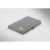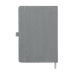 A5 notebook with hard RPET polyester corduroy cover and 192 lined recycled paper pages (70 gr/m2). Casebound design with elastic band closure, pen loop, ribbon page marker, and washed kraft paper tag.